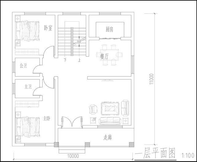 一層布局主次臥兩間臥室,單獨的飯廳,寬敞的客廳,入戶設(shè)計一條走廊,是整棟綿陽輕鋼別墅的亮點所在。