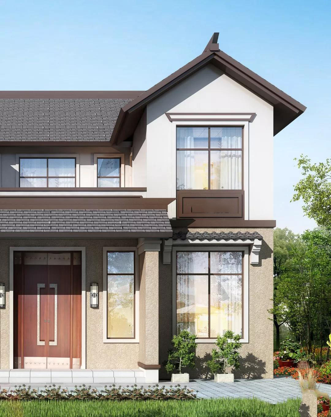 外觀設(shè)計方面,這棟四川輕鋼別墅的二樓白色,搭配屋頂?shù)幕彝呤堑湫偷闹惺脚渖?,加上一樓的褐色真石漆,讓整個房屋顯得更加的有層次感,而屋頂屋檐以及大門,還有窗戶上方的小屋檐搭配,都透露出中式傳統(tǒng)的古樸韻味。而簡約的大玻璃窗戶又體現(xiàn)出時尚的氣息。
